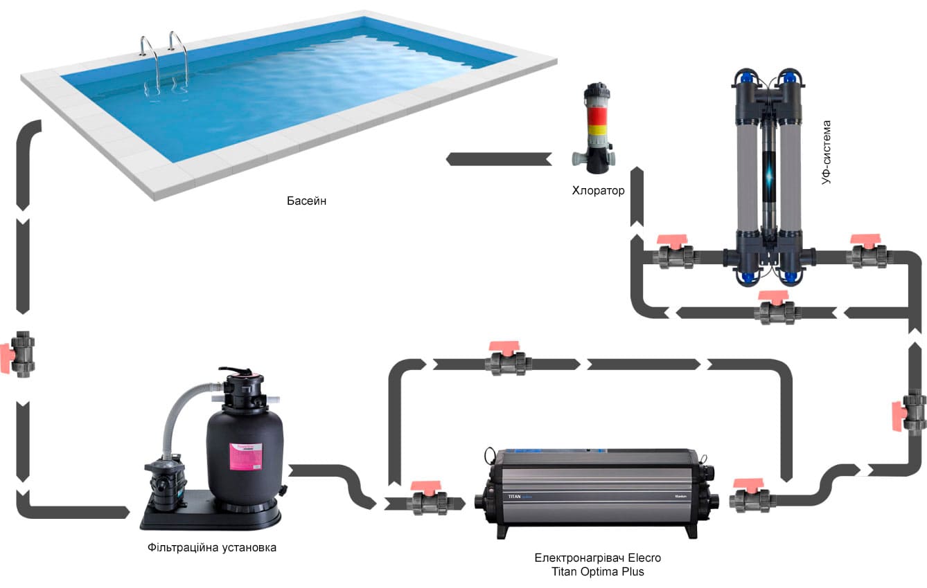 Titan Optima Plus забезпечує швидкий та ефективний нагрів води до встановленої температури. Вбудований цифровий термостат з сенсорним екраном забезпечує високу точність регулювання температури нагріву від 0 до + 45 C, з кроком налаштування 0.5 градуса. Електронагрівач автоматично ініціює запуск фільтрувального насоса для підігріву води в басейні.