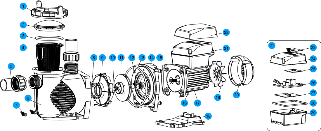 Насос відрізняється тихою роботою та низьким енергоспоживанням. Змінна швидкість зменшує споживання енергії басейном на 80% та знижує коефіцієнт зносу обладнання та його подальшого обслуговування.