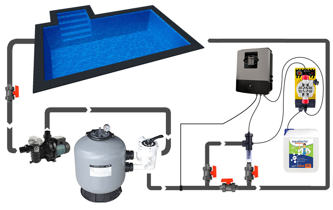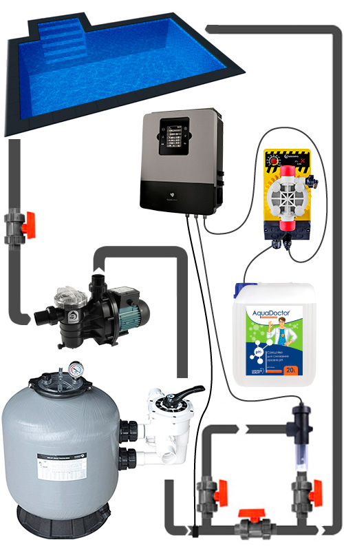 Зручна панель управління дозволяє одночасно запустити насос або встановити регулярний цикл.