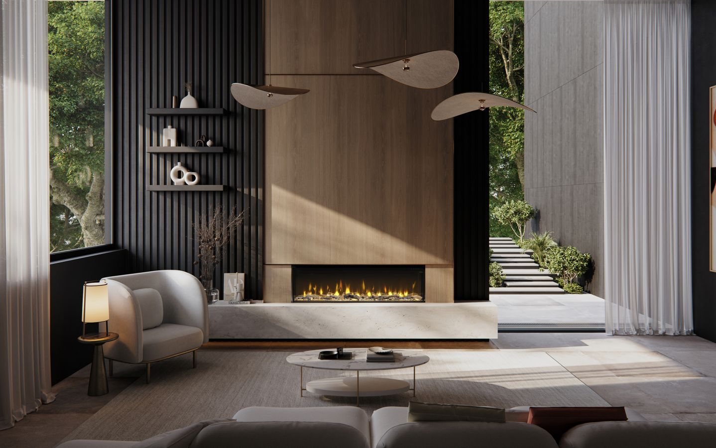 Ця ексклюзивна серія камінів доступна в трьох розмірах 50, 60 і 74 дюймів і пропонує три варіанти встановлення: одна скляна панель для вражаючого фронтального вогню, дві панелі для динамічного кутового огляду або три панелі для справді панорамного ефекту. Можливості для декорування - безмежні.