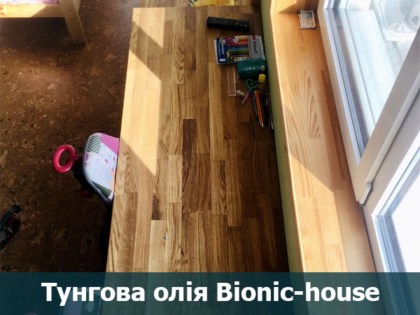 Призначення:Для всіх видів дерев'яних поверхонь і виробів. Надає дереву надзвичайну вологостійкість і зносостійкість. Тому однаково добре підходить для зовнішнього і внутрішнього застосування. Тунгова олія вдало використовується для просочування дерев'яних підлог, і паркету будь-якої породи дерева, а також для дерев'яних панелей, іншого оздоблення й декору. Особливо популярне застосування тунгової олії для меблів з натурального дерева, кухонних меблів, наприклад, стільниць, фасадів, полиць, столів, стільців та ін. В висохлому стані вона абсолютно безпечна й для контакту з харчовими продуктами. Нею покривають кухонні дошки, дерев'яні ємності для круп та сипучих продуктів і багато іншого.