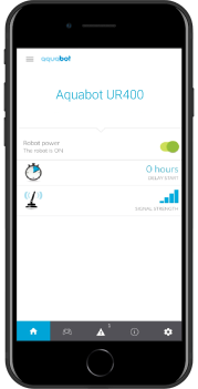Для управління роботом-пилососом через Bluetooth необхідно встановити додаток AQUABOT RC на свій смартфон. З його допомогою можна вибирати налаштування форми та поверхні відповідно до параметрів вашого басейну, а також запустити обраний цикл очищення: негайно або у відкладеному режимі. Ви можете налаштовувати прибирання за графіком кожні 48, 72 або 96 години. В процесі роботи на дисплеї відображається час прибирання й повідомлення про стан робота-пилососа або блоку живлення та управління.