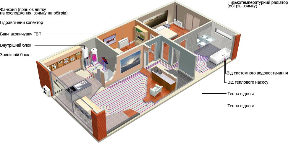 Такий принцип роботи насоса в 4 рази ефективніший, ніж робота електрокотла та у 2 рази ефективніший, ніж робота газового котла.