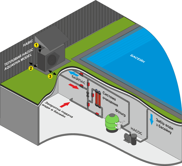 | Рекомендований об'єм басейну, м³ | від 15 до 30 | від 20 до 40 | від 25 до 50 | від 30 до 60 | від 35 до 70 | від 45 до 80 | від 55 до 90 | від 65 до 100 |