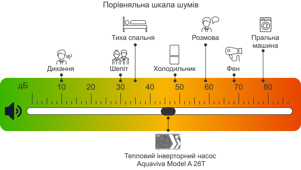 | Рівень шуму на відстані 10 м, дБА | <29 | <31 | <32 | <34 | <35 | <36 | <37 | <38 |