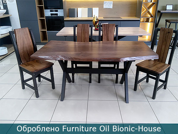 Універсальна для будь-якого дерев'яного виробу з будь-якої деревиниПризначення: Наша олія чудово підійде для будь-якого виду дерев'яних меблів: кухні, спальні, шафи, комоди, трюмо, столи, стільці, ліжка, і багато іншого, все дерев'яне, що є річчю активної експлуатації в побуті й на роботі, все що занадто красиво щоб його зафарбовувати, і все що потребує біологічного захисту не на шкоду екології й вашому здоров'ю, все це можна обробити олією для меблів Bionic-House.