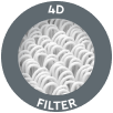 Технологія 4D-фільтра, що складається з фільтрувальної вставки з еластичною тривимірною петльовою тканиною, відфільтровує будь-які забруднення з води за допомогою додаткової вібрації. Подвійний картриджний 4D-фільтр уловлює все: від спор цвілі до листя.