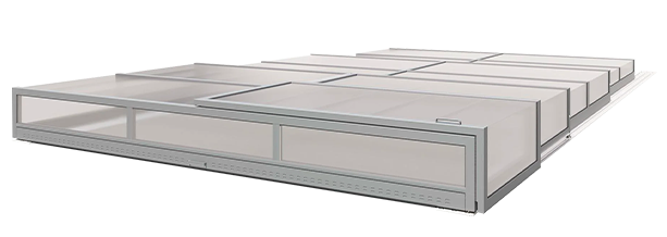 Конструкція виготовлена з міцного полікарбонату та алюмінієвого профілю з полімерним покриттям. Мобільні секції легко зсуваються по рейках, займаючи мінімум місця. Розсувне накриття витримує сніг, вітер, перепади температур і навіть град.