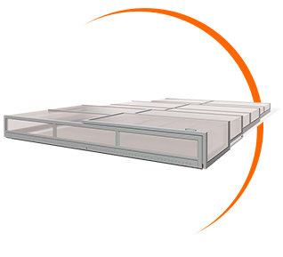 Павільйон Klever Degas це розсувне накриття для басейнів прямокутної форми. Павільйон захищає воду від сміття та опадів, зберігає тепло, знижує витрати на обслуговування та запобігає випадковому падінню дітей або тварин у басейн.