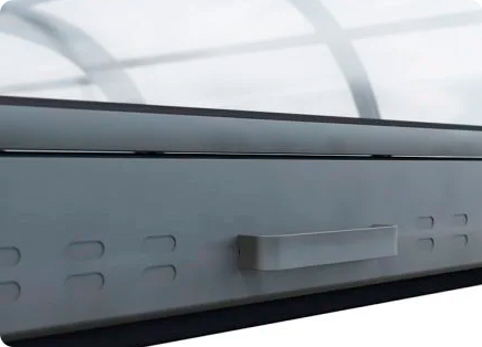Каркас виконаний з посиленого профілю, стійкого до корозії та погодних впливів. Прозорий полікарбонат захищений від ультрафіолетового випромінювання, не вигоряє на сонці та зберігає прозорість протягом усього терміну служби. Завдяки цьому басейн залишається візуально відкритим навіть у закритому стані, а сама конструкція відрізняється довговічністю та надійністю. Розсувні двері дозволяють користуватися басейном навіть при закритому павільйоні, зберігаючи зручність та комфорт. Двері купуються окремо.